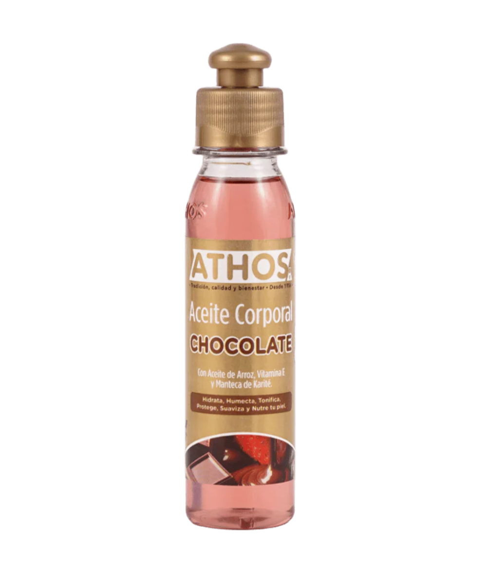 El Aceite Corporal con Chocolate ATHOS es ideal para complementar tu rutina de cuidado corporal. Su fórmula ayuda a mantener la piel hidratada, nutrida y suave, brindando una sensación de confort y bienestar durante su aplicación.