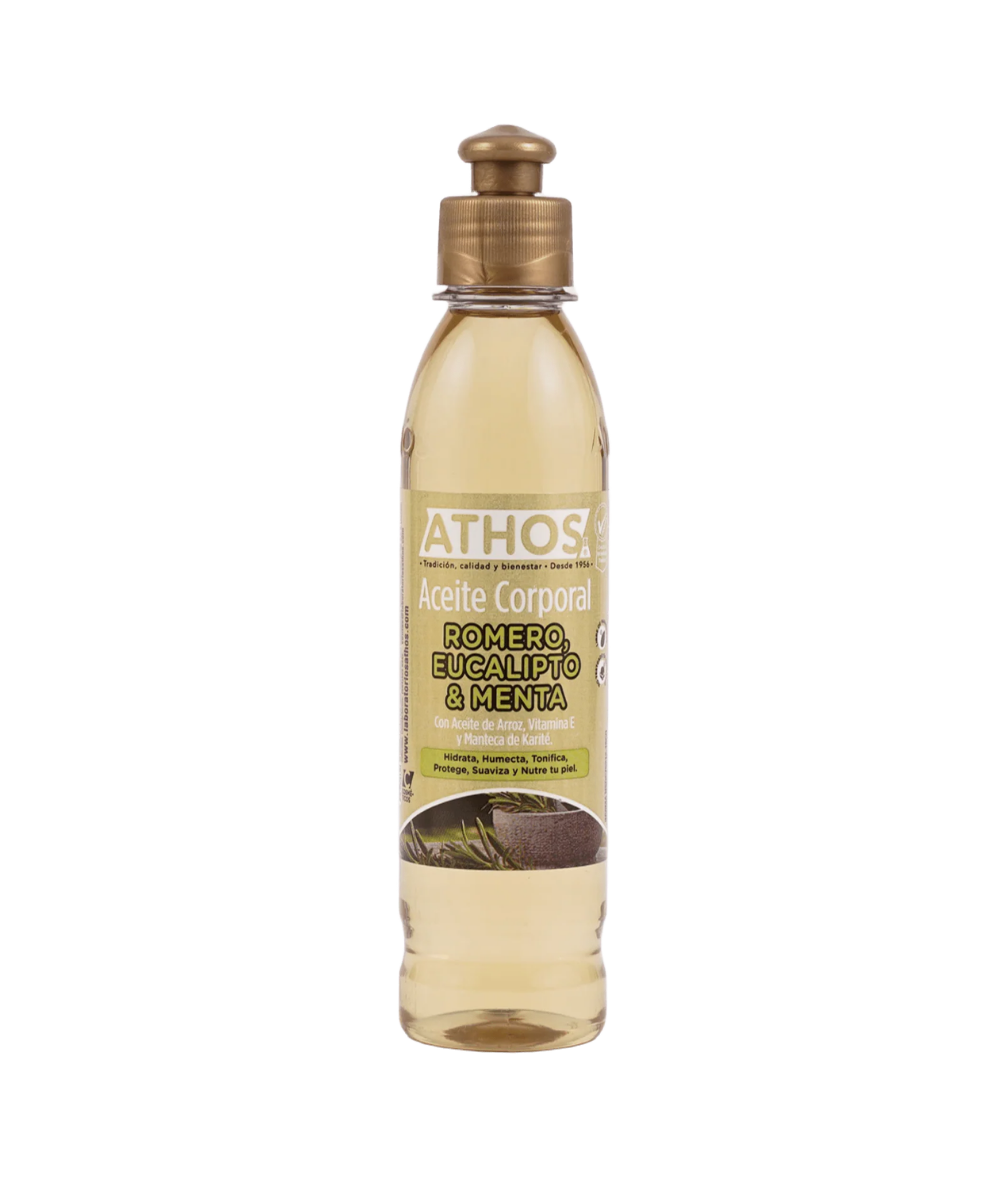 El Aceite Corporal con Romero, Eucalipto & Menta ATHOS ayuda a mantener la piel hidratada y suave, aportando una agradable sensación de bienestar.